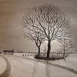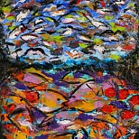 Een globale impressie van het schilderij "Genesis dag 2" 40x50cm.