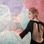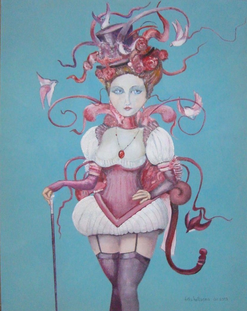 Een globale impressie van het schilderij "Vogelvrouw" 40x50cm.
