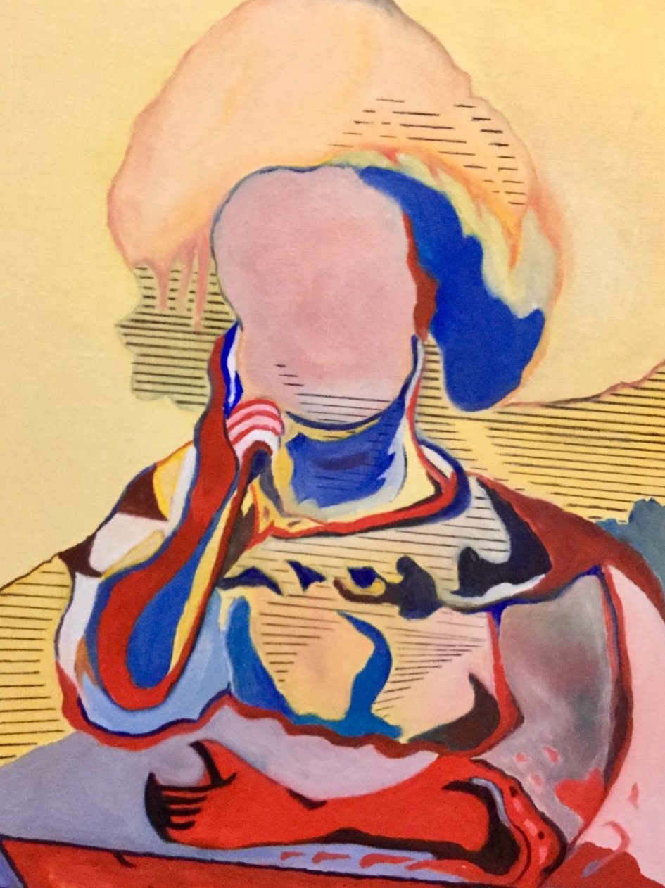 Een globale impressie van het schilderij "Streepjes vrouw" 50x60cm.