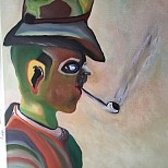 Een globale impressie van het schilderij "Mauriske de duivemelker" 50x60cm.