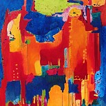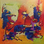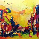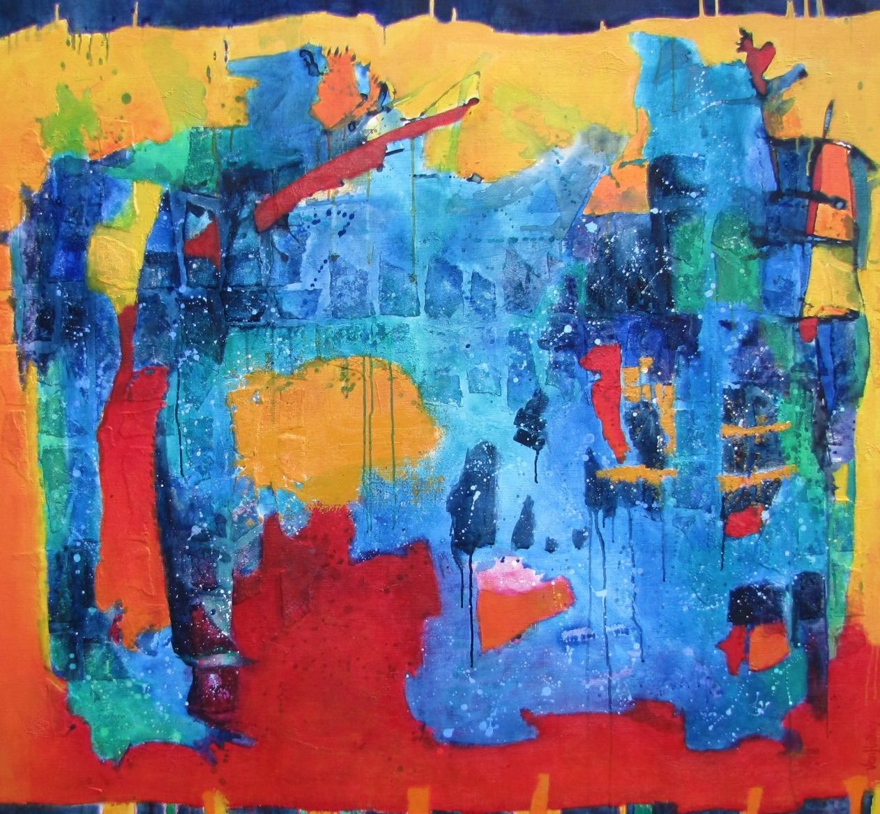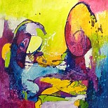 Een globale impressie van het schilderij "Alone" 140x130cm.