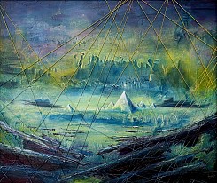 Het resultaat is een abstract landschap met veel symboliek en dynamiek.