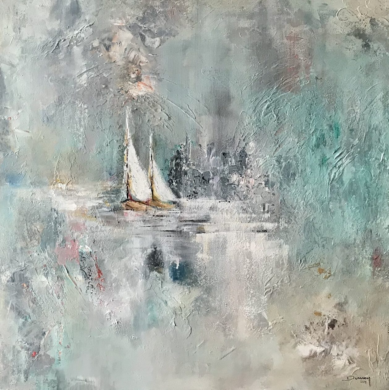 Een globale impressie van het schilderij "You know where to go" 80x80cm.