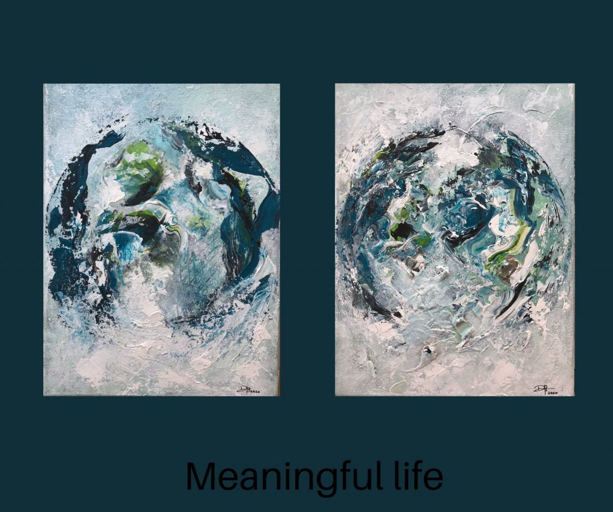 Een globale impressie van het schilderij "Meaningful life" 80x80cm.