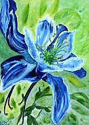 Een globale impressie van het schilderij "Blue Akelei" 60x80cm.