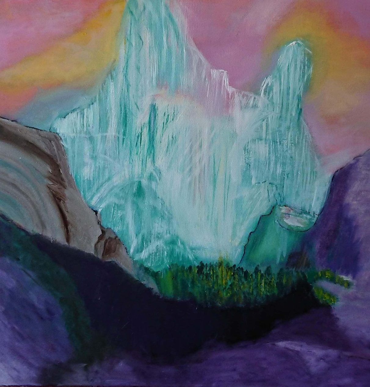 Een globale impressie van het schilderij "Mountain of ice" 50x50cm.
