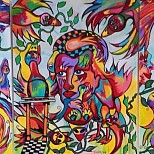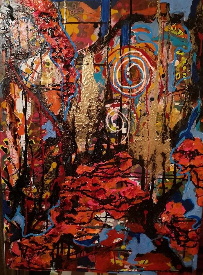 Een globale impressie van het schilderij "Life circel" 80x100cm.