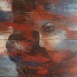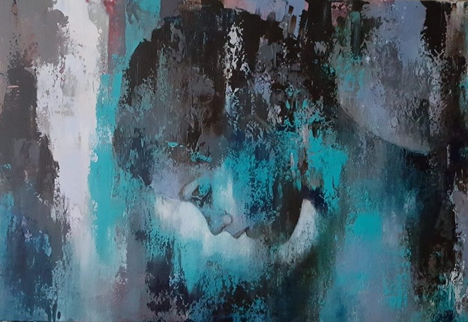 Een globale impressie van het schilderij "Geabstraheerd portret" 80x120cm.
