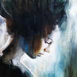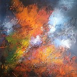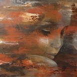 Een globale impressie van het schilderij "Geabstraheerd portret" 75x155cm.