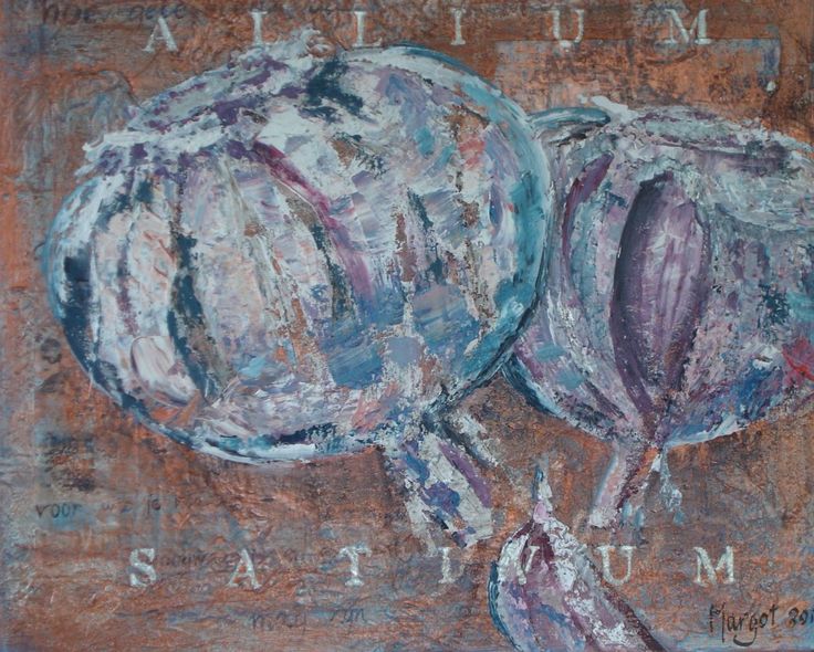 Een globale impressie van het schilderij "Allium sativum" 60x50cm.