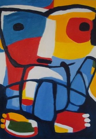 Het schilderij is in de stijl van Karel Appel (latere jaren) gemaakt. Acryl op Canvas doek.