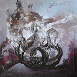 Een globale impressie van het schilderij "Grijze zone" 50x50cm.