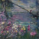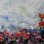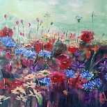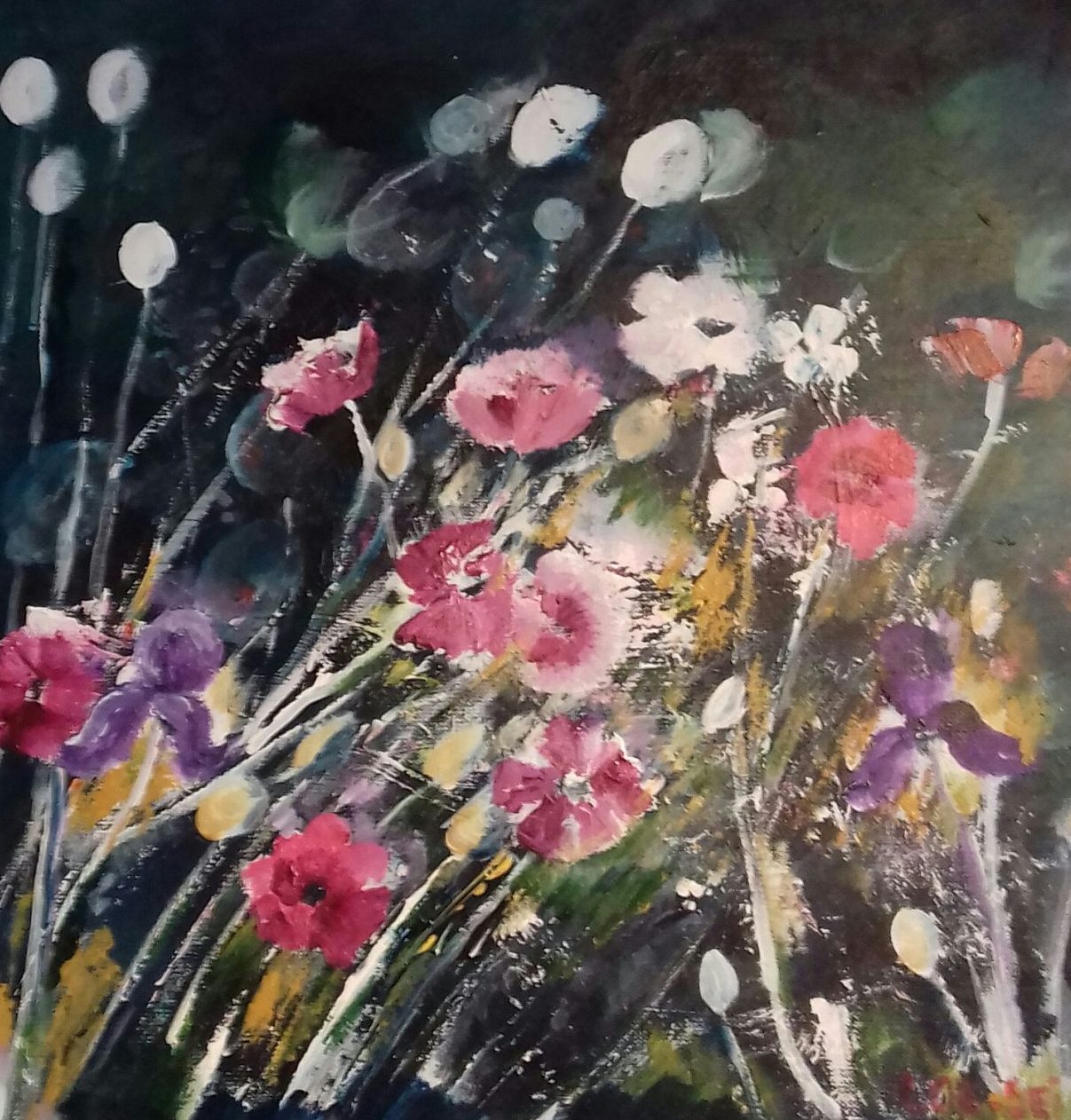 Een globale impressie van het schilderij "Wilde bloemen (3)" 45x45cm.