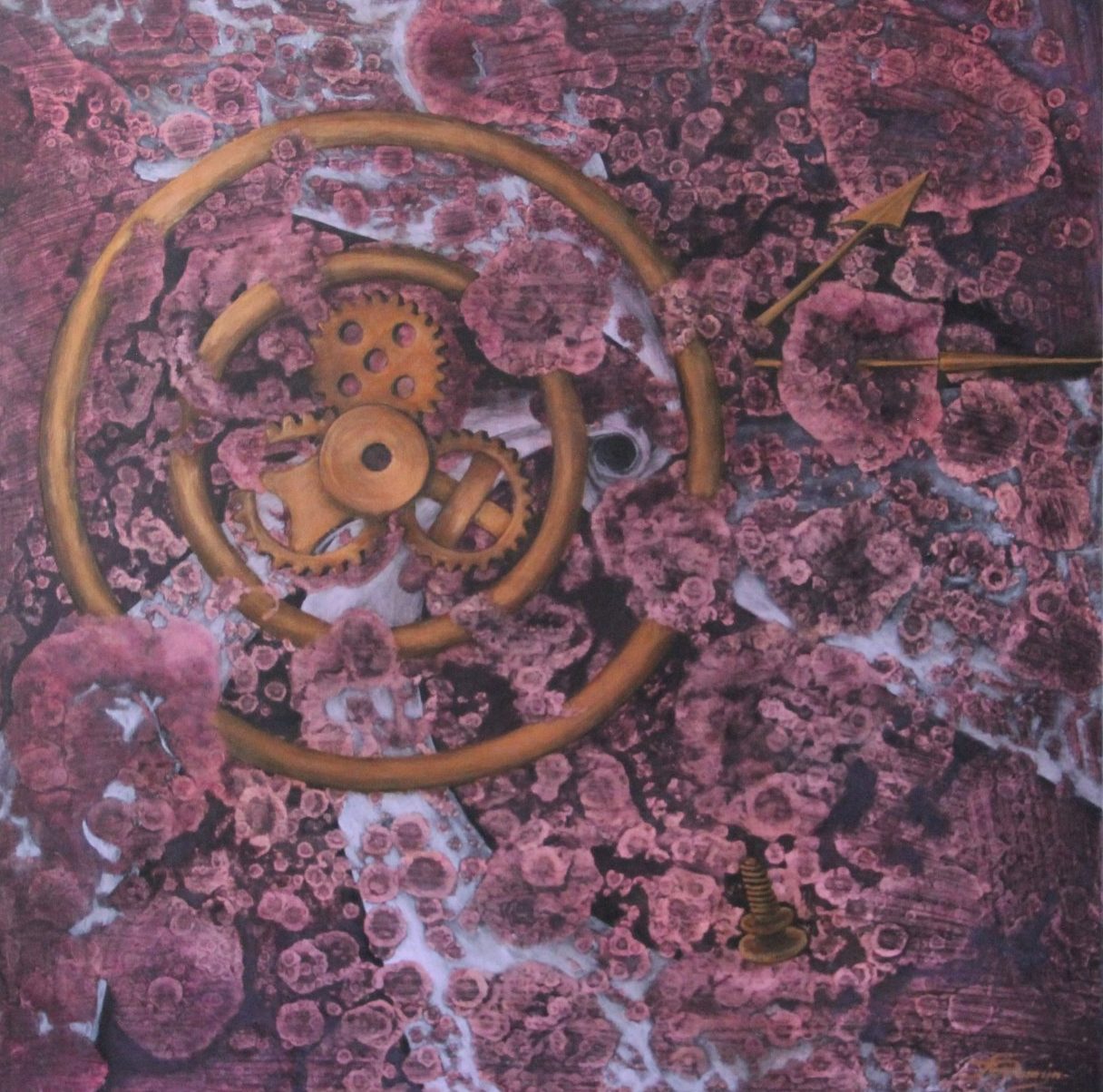 Een globale impressie van het schilderij "Timeless" 80x80cm.