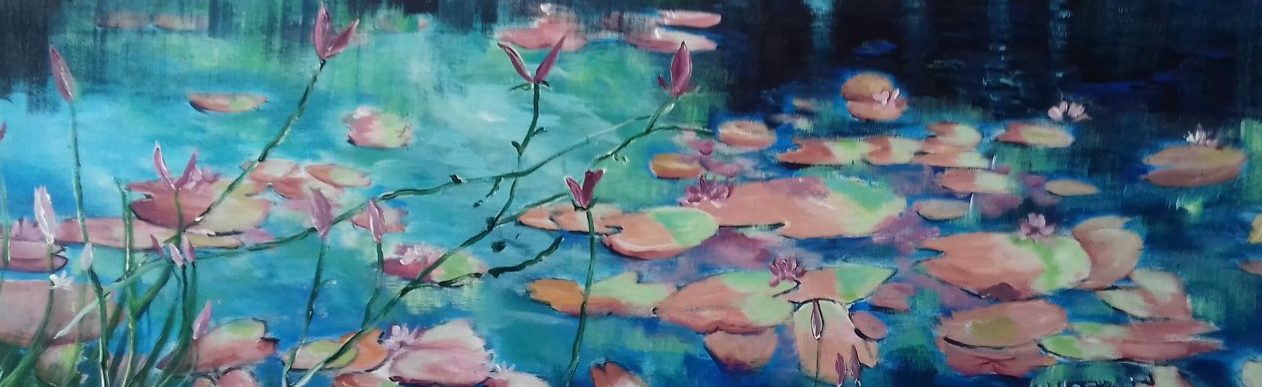 Een globale impressie van het schilderij "Waterlelies" 120x40cm.