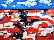 "Noordkaap" Olieverf op canvasdoek. Abstract kunstwerk in de stijl van o.a. Jan Cremer en de Cobrabeweging jaren 50. Afmetingen kunstwerk 60 x 80 Cm.