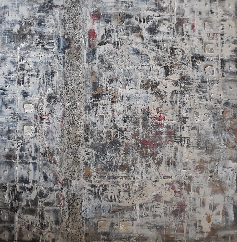 Een globale impressie van het schilderij "Old Stone" 100x100cm.
