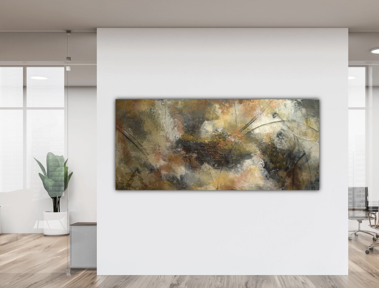Abstract schilderij think gold 2 Luik 50x 120 + 60x120