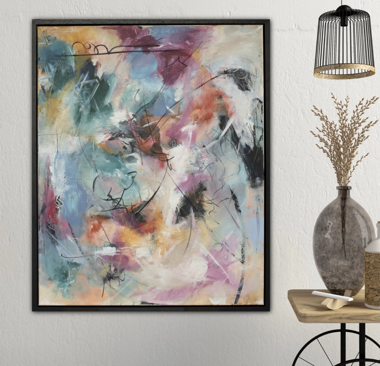 Acryl op canvas 3D doek. Afgewerkt met mat vernis laag.ophang systeem aanwezig. Maat en prijs is incl.zwarte baklijst