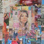 Kleurrijk, Abstract mixed media schilderij, op dubbeldik linnen doek.