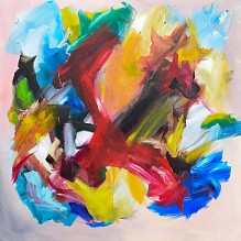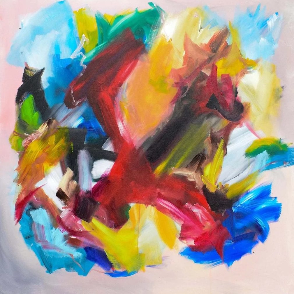 Een globale impressie van het schilderij "Happy moments" 100x100cm.