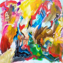 Een globale impressie van het schilderij "The party is going on" 100x100cm.