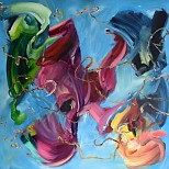 Een globale impressie van het schilderij "What has love got to do with it" 90x90cm.