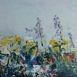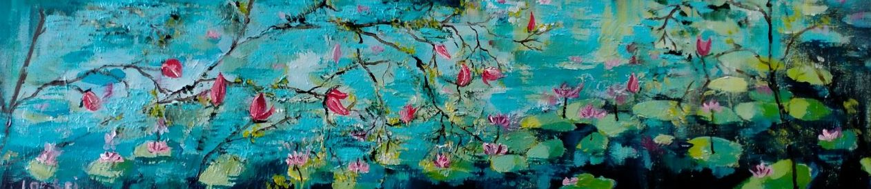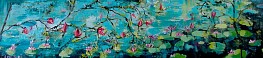 Een globale impressie van het schilderij "Waterlelies" 120x30cm.