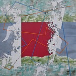 Een globale impressie van het schilderij "LINE-UP (Seventh)" 70x70cm.