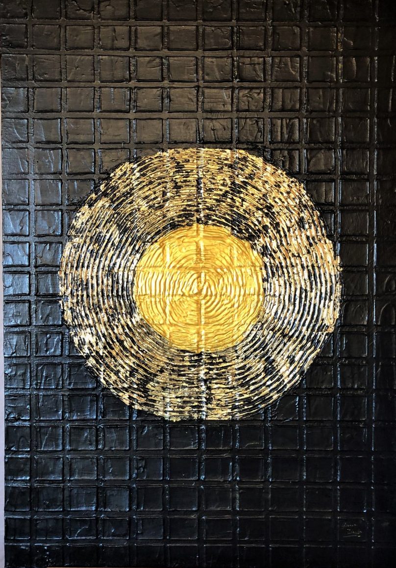 Gemaakt met Pasta- Acryl en Bladgoud