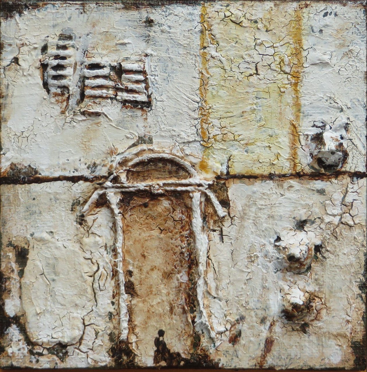 Een globale impressie van het schilderij "Poortje 2" 12x12cm.