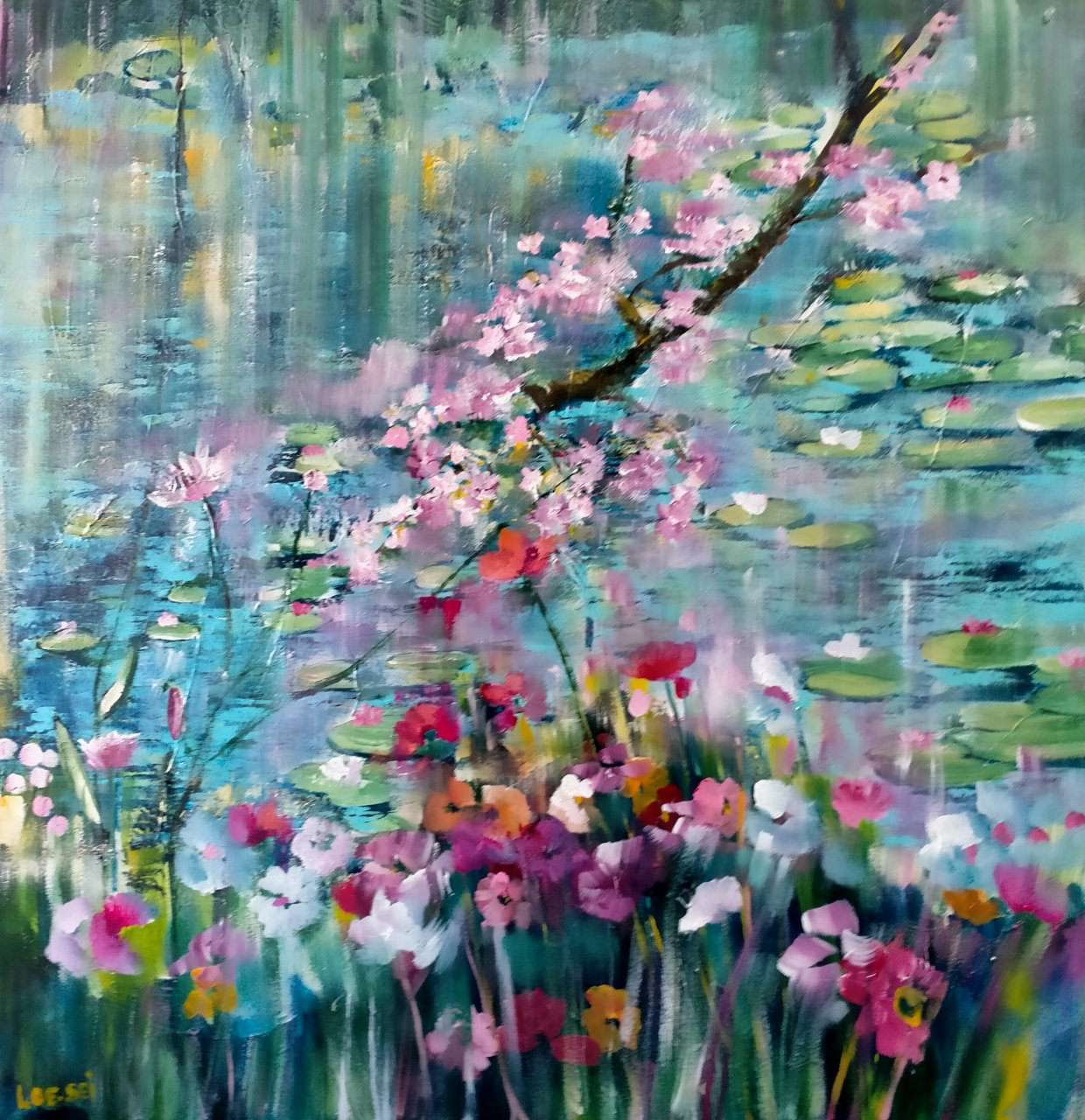 Een globale impressie van het schilderij "Giverny" 100x100cm.