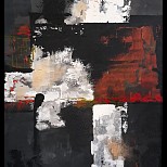 Klein Squary zit in een lijst met gebroken witte passe partout en zit in een zwarte lijst waarvan de maat 44 bij 44 cm. is.