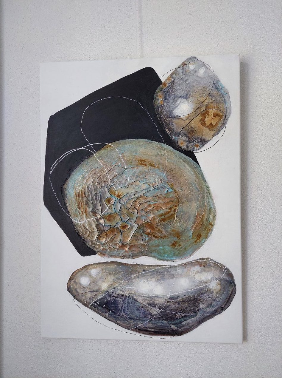 Een globale impressie van het schilderij "Uit de serie Balans :" 40x60cm.