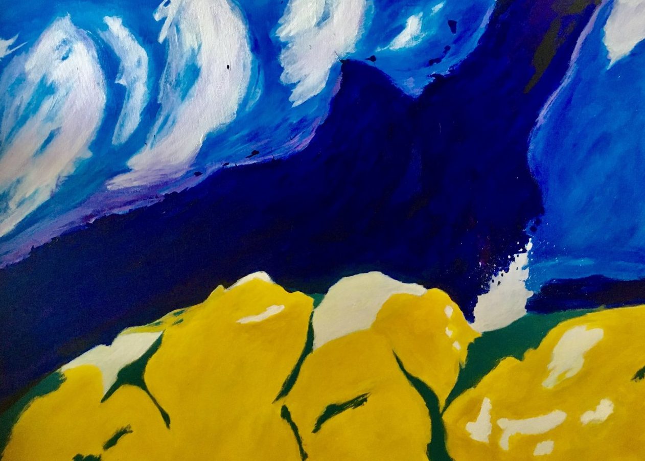Een "expressionistisch" werkstuk in de stijl van o.a. Jan Cremer en/of kunstenaar Emil Nolde (1867) Acryl op Canvas. Afmeting doek: 70 x100 Cm.