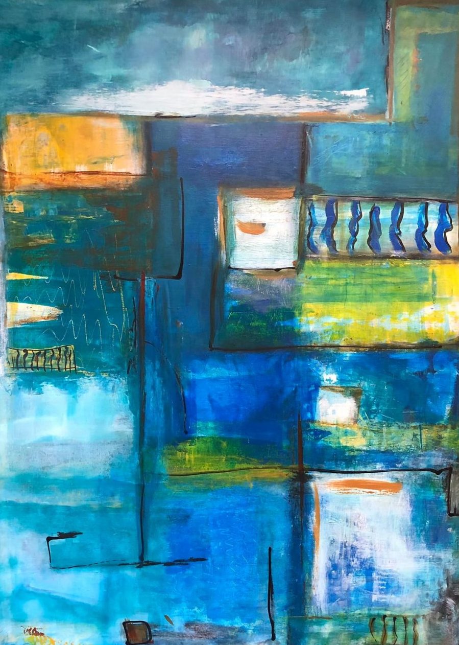 Een globale impressie van het schilderij "Waterland" 90x122cm.