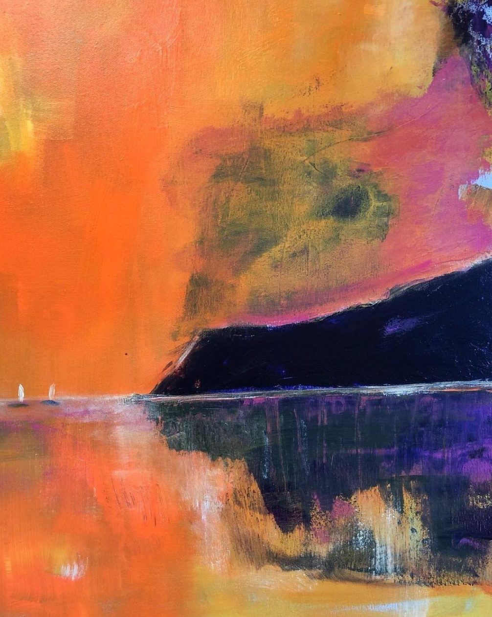 Acryl met coldwax op 50x70 cm doek met zwarte Tonio lijst.