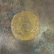 Mixmedia ronding uitspringend met veel structuur en lagen gemaakt - acrylverf