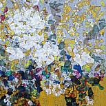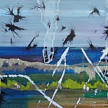 Abstract schilderij uitgevoerd in Olieverf en Inkt op Linnen