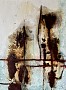 Mixed media schilderij met veel textuur van craquelé en roest, natuurlijke pigmenten.