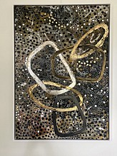 Golden rings, mixed media. Incl. Witte lijst 75x105 cm.