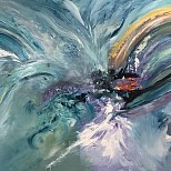 Een globale impressie van het schilderij "Citrine" 100x100cm.