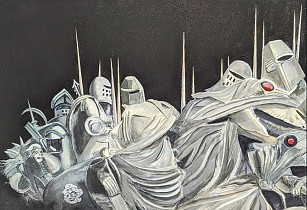 Een globale impressie van het schilderij "Dolende ridders" 140x90cm.