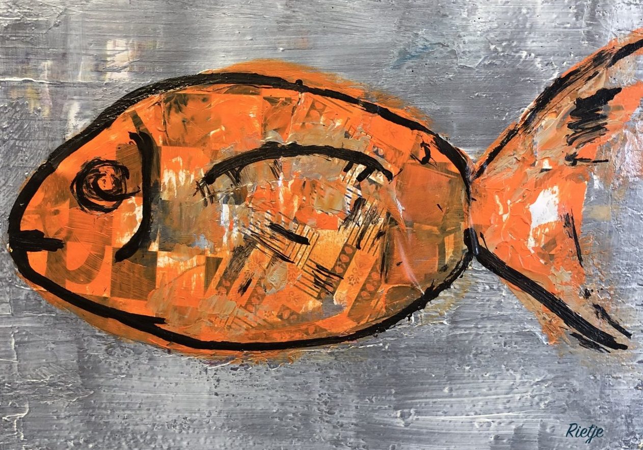 Een globale impressie van het schilderij "Visje" 22x20cm.