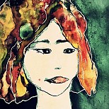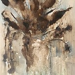 Mixed Media (paraffine inkten en pigmenten) op aquarel op paneeltje van 0,9 cm dik.