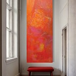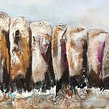 Een landschap, elke dag weer anders qua kleur en waterstand. De kleuren spiegelen in het water dat stdoor het landschap stroomt. De seizoenen kleuren de bladeren en zorgen voor de wisselende waterstanden. De constante beweging en veranderingen van dit wonderschone schouwspel heb ik in dit werk proberen te verbeelden.