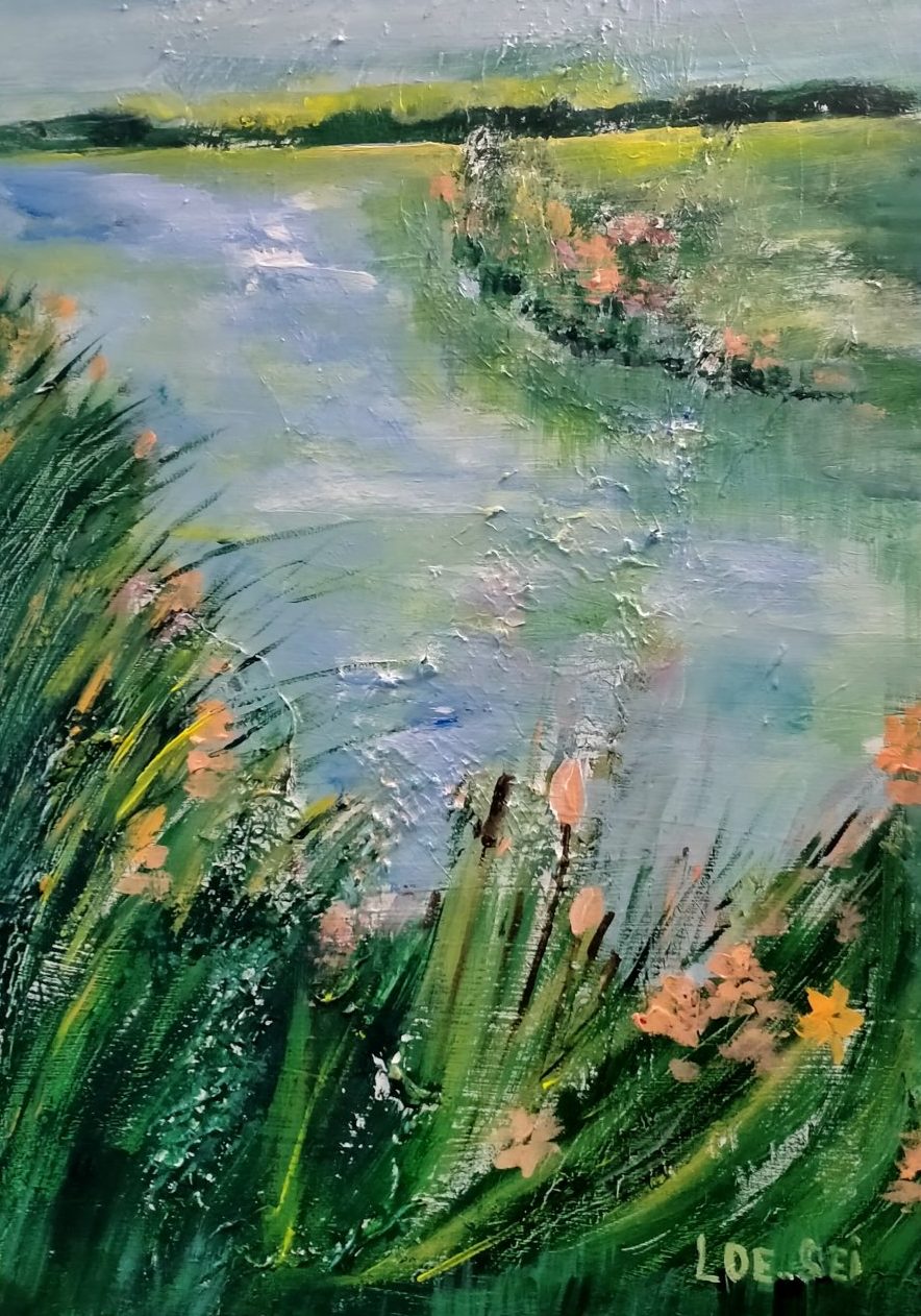 Een globale impressie van het schilderij "Rivier (2)" 50x80cm.