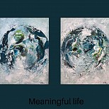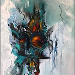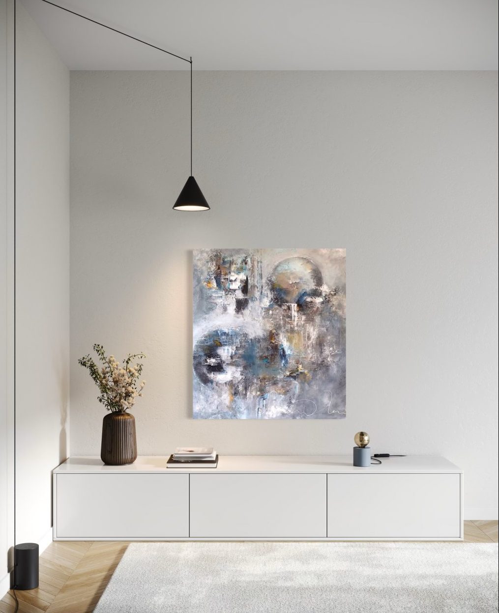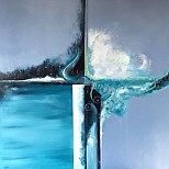 Een globale impressie van het schilderij "Tussen twee werelden" 80x80cm.