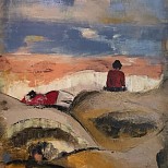 Oker, ultramarijn en een vleugje goud raken aan aarde, lucht en licht. Ze brengen warmte en mysterie.