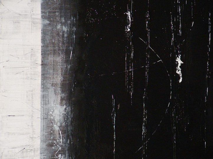 Een globale impressie van het schilderij "Blackliner" 100x100cm.